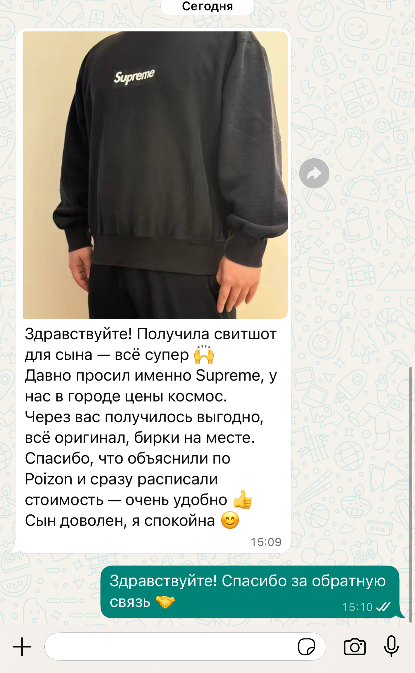 Из цены товара + 10% нашей комиссии за выкуп + стоимость доставки. Например, цена на Poizon + комиссия сервиса рассчитываются сразу при заказе, а международная доставка рассчитывается отдельно по факту – когда товар прибудет на наш склад и мы узнаем точный вес. Никаких скрытых платежей – вы всегда знаете, за что платите.